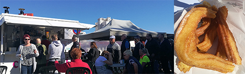 Churros hører selvfølgelig til når man rusler rundt på marked i Spania. Første gang jeg smakte churros, ble jeg litt forbløffet. Det er mange, mange år siden – kanskje 20 år siden. Jeg så noen som gikk og spiste på store, lubne chips (pommes frites). Jeg hadde aldri sett så store chips, og de så kjempe gode ut. Litt lengre borte så jeg et “gatekjøkken”, med en kø foran. Jeg sendte derfor Odd avgårde for å kjøpe chips. Han kom stolt tilbake, med en stor pakke. Vi gledet oss til å smake på chipsen, og tok et stort tygg. Oi, det smakte ikke salt som forventet – men søtt! Første tanke var: ÆSJ! Men da jeg fikk omorganisert hjernen til å forvente noe søtt – smakte det jo kjempe godt. Etter dette har Churros blitt en favoritt, spesielt når vi går på marked og koser oss.