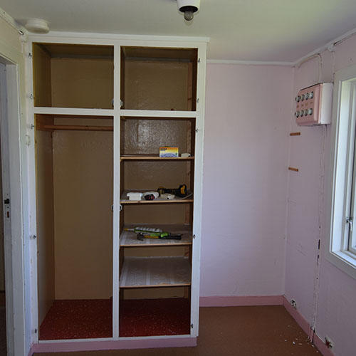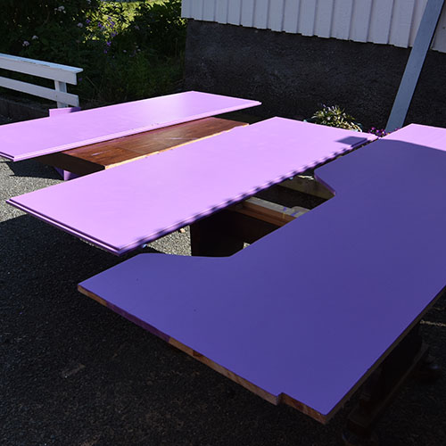 Da har vi faktisk kommet godt i gang med oppussingen av kammerset. Ja, godt, og godt? Vi har valgt farger til vegger, tak og skapdører. Det blir lilla, og det blir skikkelig flott! I tillegg til å velge fargene har vi begynt å male skapdører, samt det av inventaret som skal males. Jeg tror at sluttresultatet blir veldig bra. Midt oppe i alle oppussingen hadde vi gjester til lunsj i går. Ikke for det, det er alltid hyggelig med besøk av gode venner. Hva vi serverte? Menyen vil faktisk komme sakte, men sikkert, på bloggen denne uka – bare gled deg, det er mye godt! Allerede i dag starter vi opp med oppskriften på Aspik, som er en”høydare” på et hvert lunsjbord spør du meg.