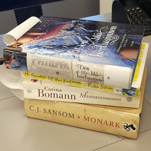 Det er en fantastisk høstvær. I forrige uke øste regnet ned, og det var bare ekkelt vær. Men denne uka har så langt vist seg fra sin aller beste side. Nydelig vær, med ti grader og strålende sol. Helt fantastisk! Så denne uken har jeg syklet mange mil (- ja eller les: to så langt denne uka). I går hadde jeg en flott sykkeltur i strålende sol, til biblioteket for å få hentet litt mer lesestoff. For jeg er nesten tom for bøker akkurat nå. Ja, jeg er ikke helt tom for lesestoff, men har liksom ikke lyst til å lese i de bøkene jeg har liggende på vent. Men jeg fikk da lånt fire bøker, som jeg virkelig gleder meg til å begynne å lese.
