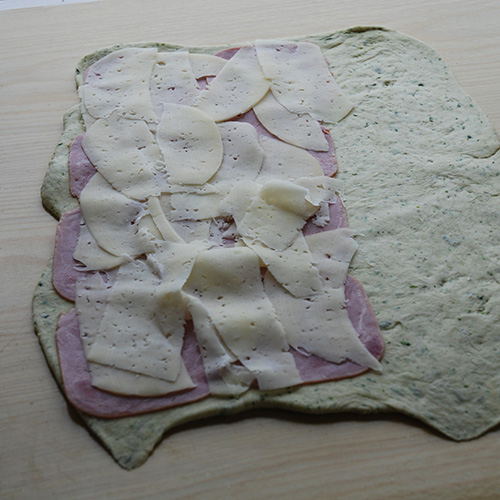 Snurrer med ost, persille, purre og skinke Ingredienser  3 ½ dl	Vann 1 pk	Gjær Ca. 600 g	Hvetemel 150 g	Hvitost (revet) ½ bunt	Persille (hakket) ¼ - ½	Purre (hakket) 1 ts 	Salt 2 ts	Sukker  Fyll:  150 g	Ost (revet) 150 g	Skinke
