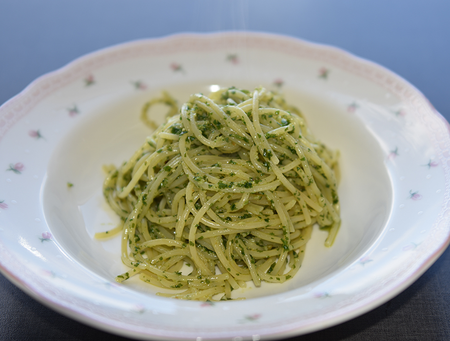 Spagetti med Ramsløkspesto – skikkelig god sommermat!
