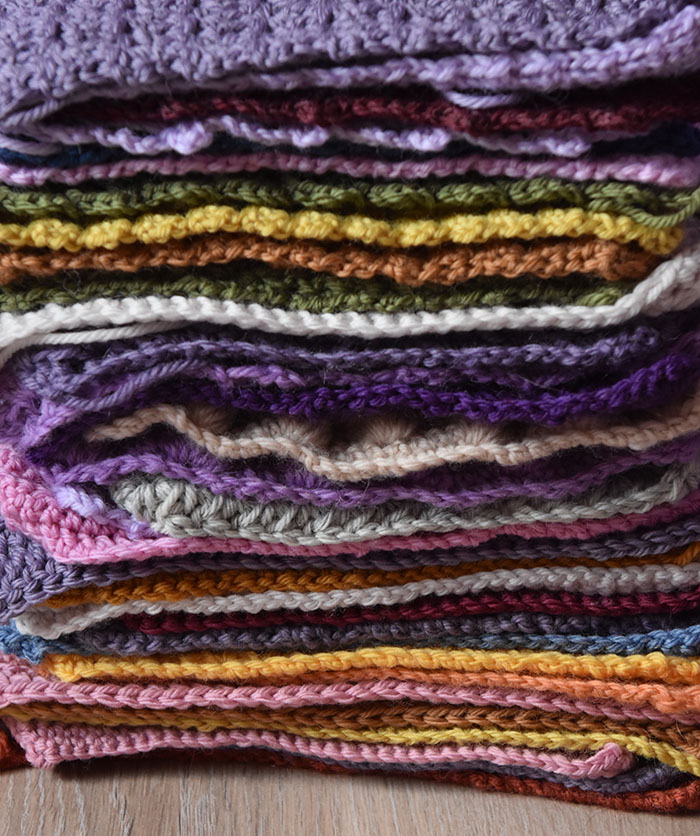 Hekleteknikker brukt i sommerprosjektet 2020 – sengeteppe (lappeteppe):