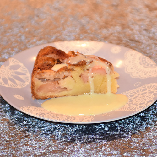 Dette er min mormor Gudruns oppskrift på eplekake, og den er skikkelig god. Eller for å være helt ærlig, som barn syntes jeg nok det var litt vel mye epler og lite kake. For jeg elsket kaker og søte saker. – Ja, det gjør jeg jo fremdeles, men setter nok mye mer pris på eplene nå. I mormors oppskrift var det mye epler. I oppskriften står det at du skal bruke 6 epler. Jeg bruker bare å ha oppi så mye epler som jeg får oppi, eller så mye jeg har. Som Mormor lager jeg eplekaken med to lag epler: Ett i midten og ett på toppen. Hvis du synes det blir litt i det meste laget, kan du halvere eplemengden, og bare legge epler på toppen av kaka. Det bruker jeg å gjøre hvis jeg ikke har så mange epler. I oppskriften stod det opprinnelig at du skal skrelle eplene, og det kan man selvfølgelig gjøre. Jeg gjør sjelden det – bare hvis skallet er skrukkete og stygt skreller jeg . Men jeg gjør det ikke på nyplukkete ferske epler rett fra hagen – Det er vel smak og behag tenker jeg.