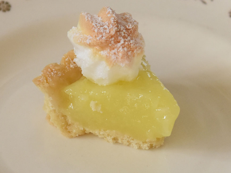 | 6 Sprøyt marengs over sitronkremmen, og Sett paien midt i ovnen, Til marengsen er fast og lys brun |