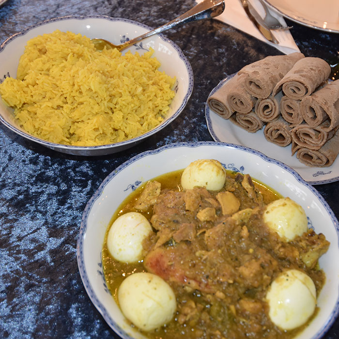 | 10 Serveres med ris, himbasha og/eller injera (lefser) |