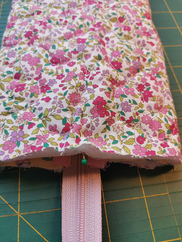 Trinn 5 – Finne midten – så glidelåsen blir sentrert når pennalet er ferdig:
