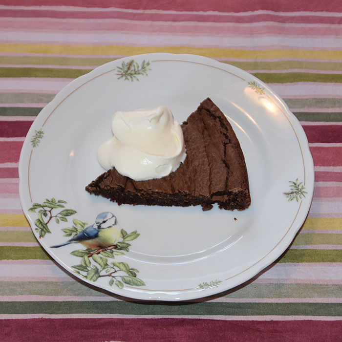 Kladdkake er vel egentlig en svensk kakevariant. Uansett, er det ei skikkelig god og klissete sjokoladekake som kan spises som den er eller serveres med krem og/eller is.