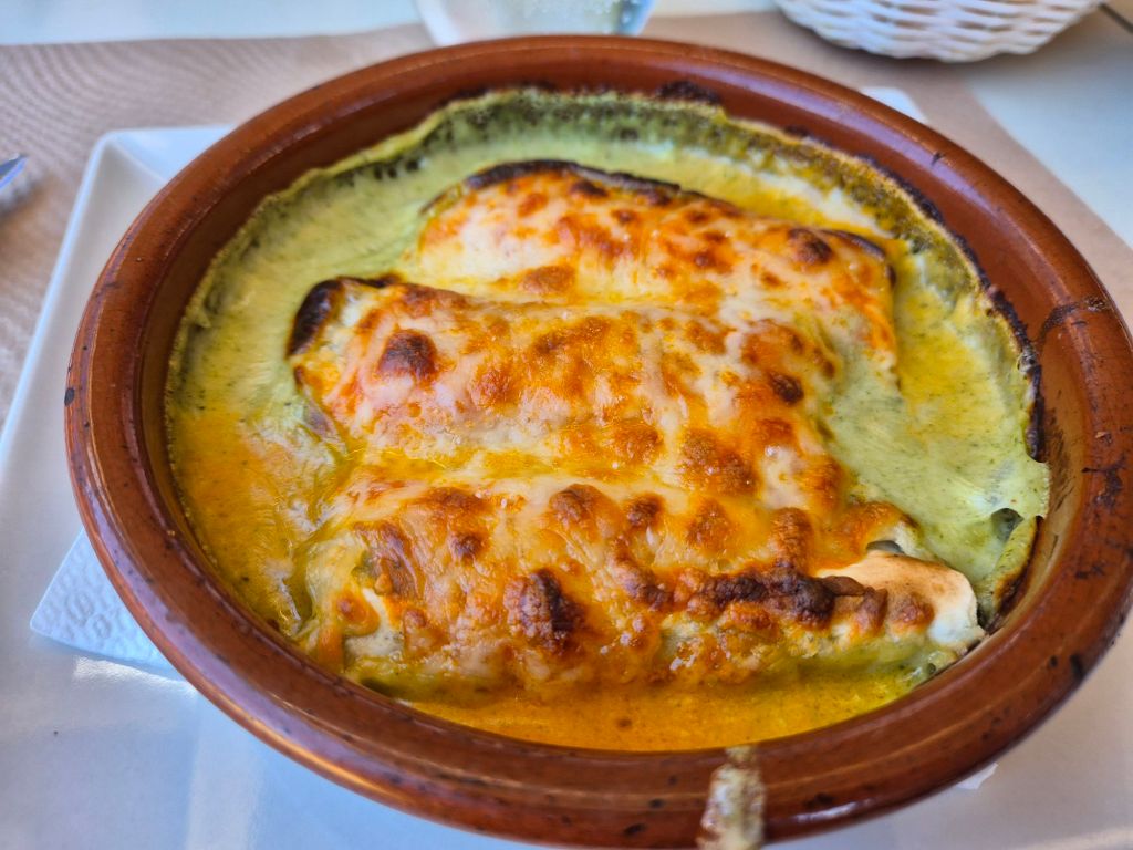 Til forrett valgte jeg spinat-canneloni, og den var helt nydelig – silkemyk pasta, fylt med spinat og en mild ostesaus som smeltet på tungen. Så kom hovedretten: Tunge, nydelig stekt og servert med en enkel, men smakfull tilbehør. Enkel, ærlig mat laget med kjærlighet – det merkes!