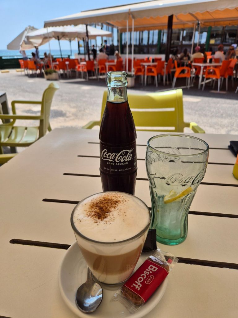 Så i dag nyter jeg bare det. Livet. Kaffen. Colaen. Skyggen. Og bølgene som aldri slutter å rulle inn.