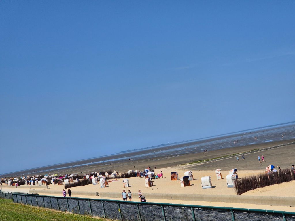 Stranda i Duhnen er lang, bred og uendelig lavmælt. Her trenger man ikke konkurrere om plass eller kjempe med parasoller som blåser bort. Nei, her er det tid – og plass – til å bare være. Når sjøen trekker seg tilbake i det dramatiske tidevannet, åpner det seg et landskap av våt sand og små bekker, perfekt for barneføtter og nysgjerrige voksne.