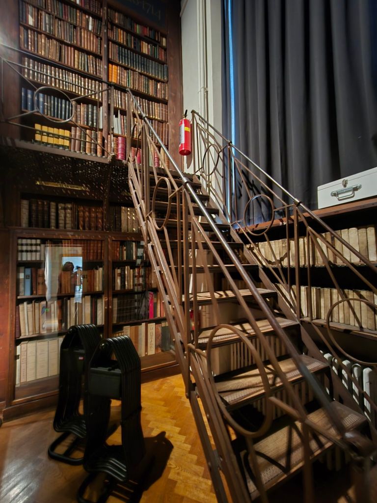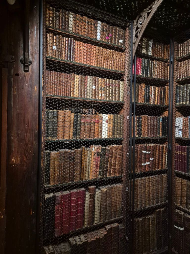 Rommet tok pusten fra meg. Høye bokhyller helt opp til taket, massive trebjelker, støvete gullbokstaver og verdens kanskje mest diskret dramatiske stemning. Jeg ble stående midt i det hele og bare… glane. For her stod ikke bare bøker. Her stod historier. Kunnskap. Liv.