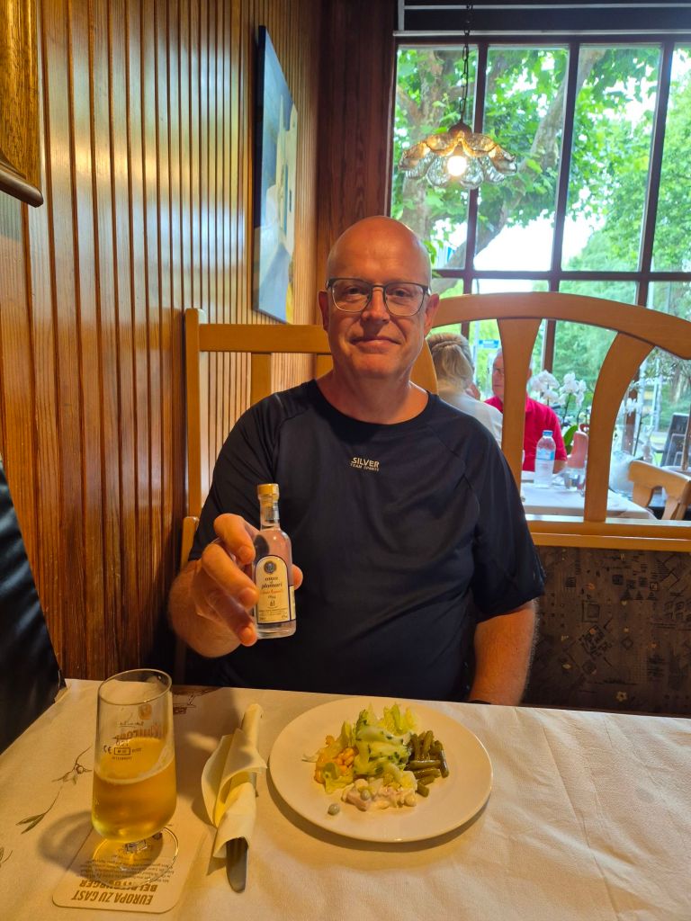 Språk? Vel… ingen kunne engelsk. Vi prøvde tysk. Eller i alle fall en slags improvisert variant som sikkert fikk Goethe til å vri seg i graven. Men det funket! Til slutt endte vi med jägerschnitzel, en fjellstor tallerken med saus som kunne mettet en liten landsby.
