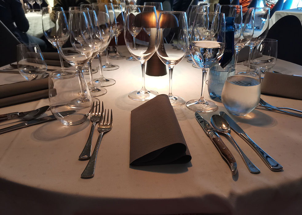 Da alle hadde kommet, og vinen til den første retten var skjenket, fortalte servitøren oss at vi hadde bordet i 3 timer – Det samme var det opplyst om da vi bestilte bordet.